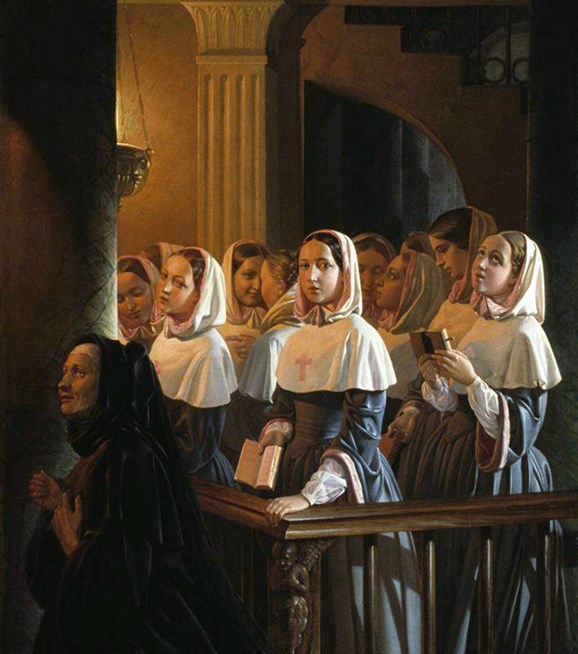 Николай Константинович Зацепин (1818-1855). Монастырки на клиросе. 1852 год. Холст, масло.