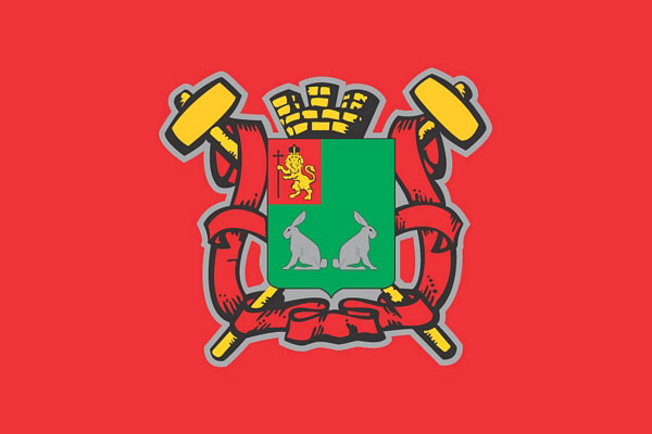 Флаг Коврова. В центре — городской герб.