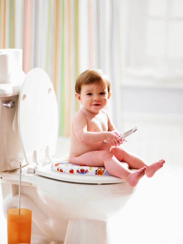 Некоторые дети предпочитают горшку унитаз, на который устанавливается специальное детское сидение.