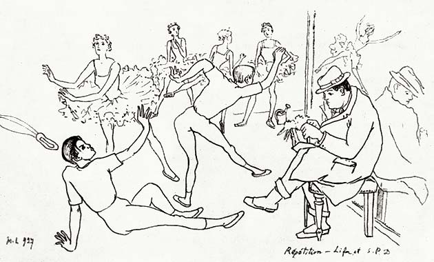 Жан Кокто. «С. П. Дягилев и С. М. Лифарь на репетиции» (1927).