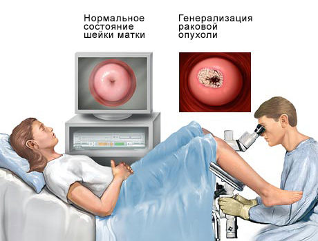 Обследование пациента при расширенной кольпоскопии.