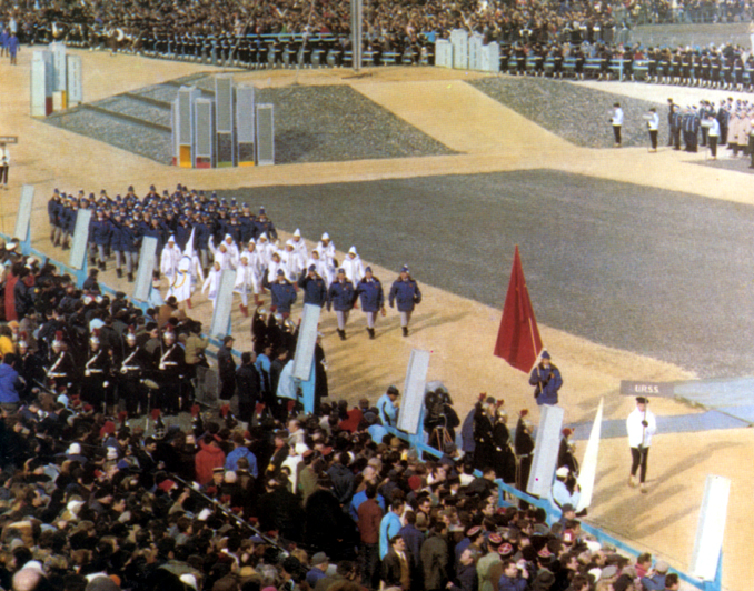 Команда СССР на параде открытия X зимних Олимпийских игр.