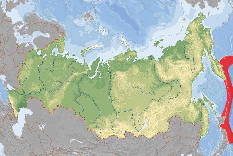 Ареал командорского ремнезуба на территории России.