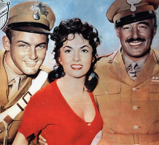 Афиша фильма Л. Коменчини «Хлеб, любовь и ревность». 1954 год. В главных ролях Роберто Риссо, Джина Лоллобриджида, Витторио Де Сика.