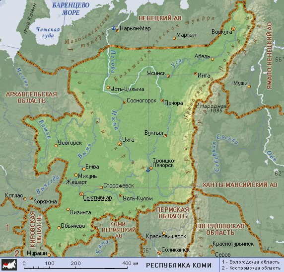 Коми республика (географическая карта)