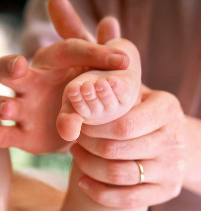 Левой рукой взрослый берет левую ногу малыша, так чтобы голень легла между большим и указательным пальцами. Большим пальцем правой руки круговыми движениями энергично растирают стопу. Указательный и средний пальцы при этом лежат на наружной поверхности стопы. Или же похлопывают тыльную сторону стопы и растирают ее.