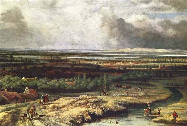 Филипс Конинк. Речной пейзаж с охотниками. Около 1650 года. Холст. Национальная галерея в Лондоне.