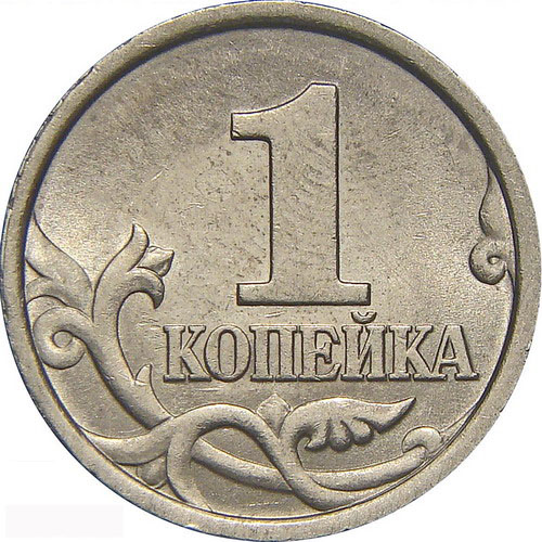 Аверс монеты номиналом 1 копейка, выпускаемой в России до 2012 года.