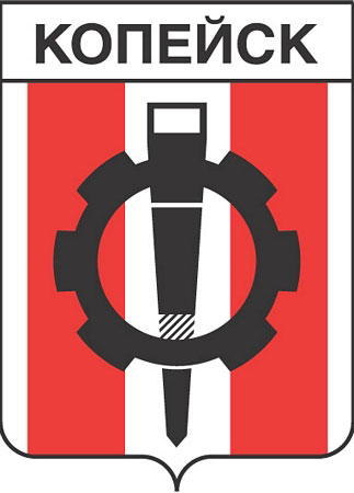 Герб Копейска, принятый 31 октября 1967 года. В центре гербового щита черные шестерня и отбойный молоток.