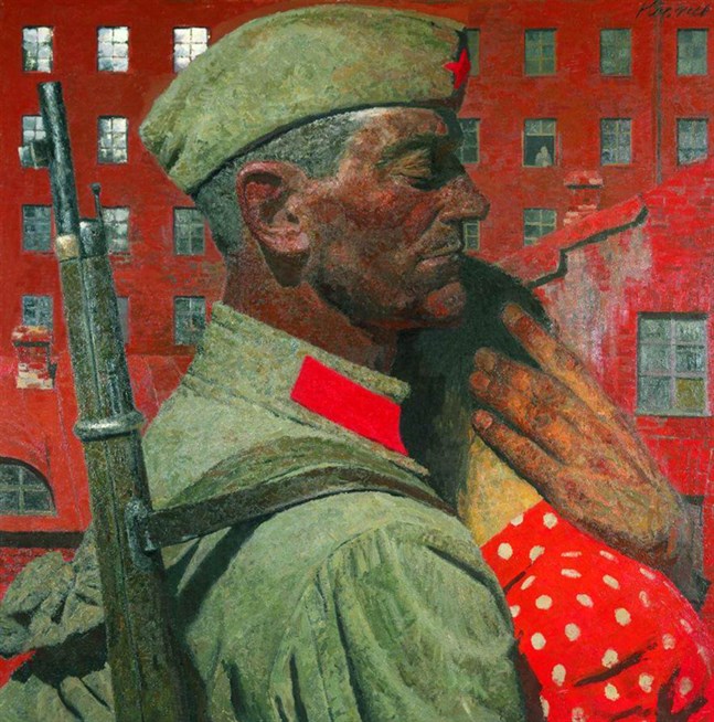 Г.М. Коржев. Проводы. Из серии «Опаленные войной». 1967 год. Холст, масло. Русский музей, Петербург.