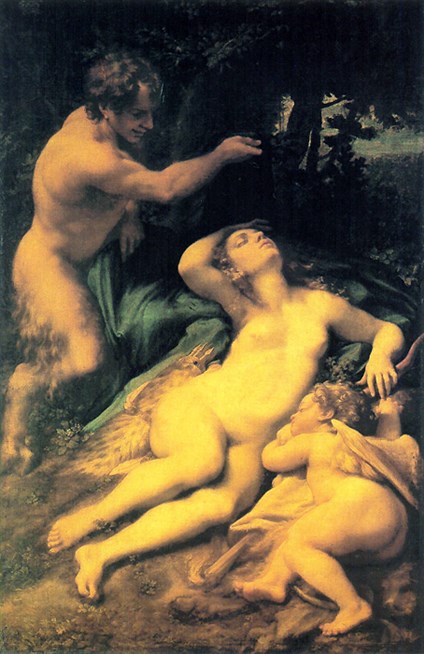 Антонио Корреджо. Венера, Сатир и Амур. Холст, масло. Лувр, Париж. Картина была написана по заказу мантуанского герцога Федерико II Гонзага (1500-1540).
