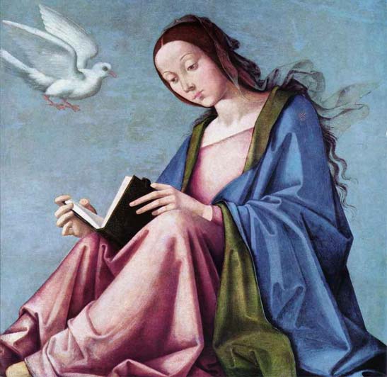 Лоренцо Коста. Дева Мария за чтением. Первая треть 16 века. Дерево. Дрезденская картинная галерея.