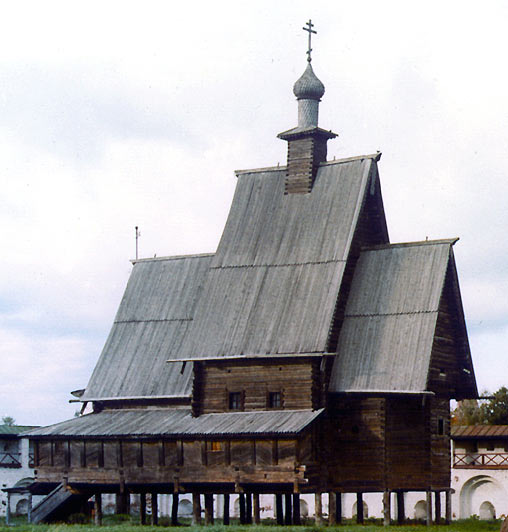Костромская область. Рядом с Ипатьевским монастырем в Костроме расположен Музей деревянного творчества под открытым небом. Преображенская церковь из села Спас-Вежи. 1628 год. Храм поставлен на сваи, что характерно для заболоченного северного пейзажа.