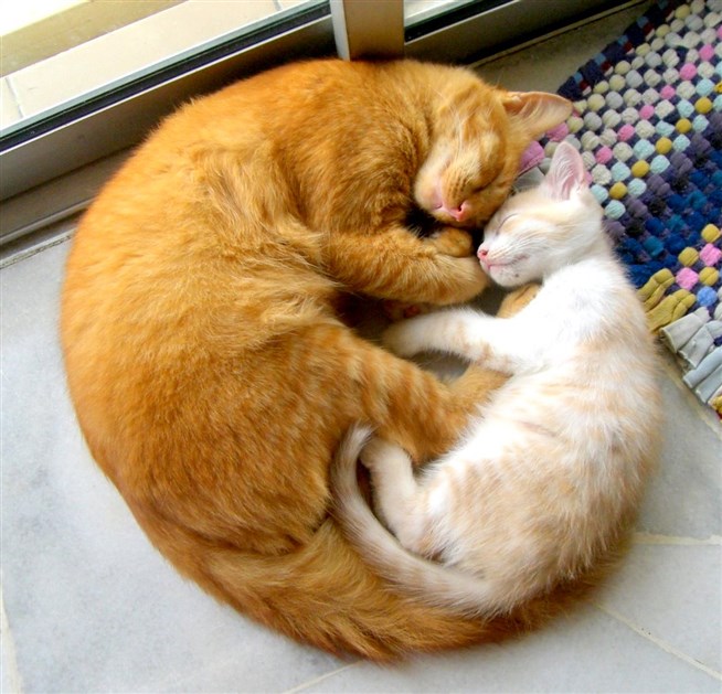 Мама-кошка с котенком спят на теплом полу. 2008 год. Фото: Gloson Teh, flickr.com