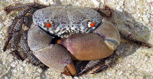 Каменный краб живет на глубине до 30 м и достигает размера 9 см.