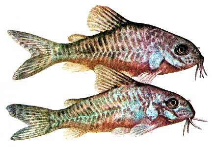 Крапчатый сомик. Вверху самка, внизу самец.
