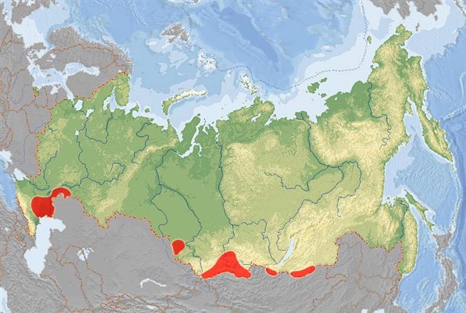 Ареал красавки на территории России.