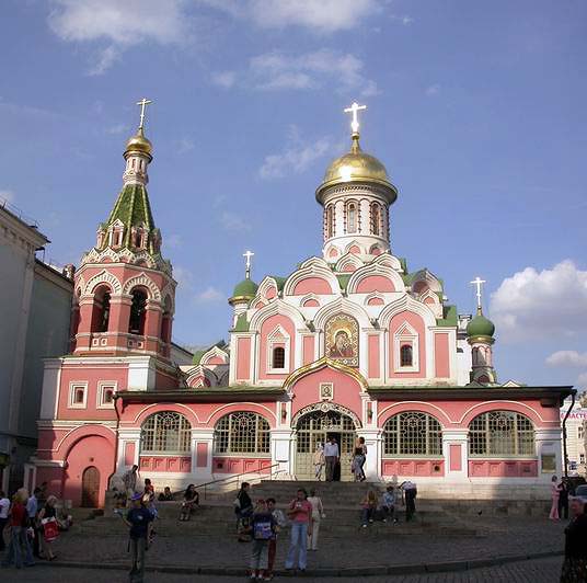 Деревянный храм иконы Казанской Богоматери был построен в 1620-х годах князем Дмитрием Пожарским в память об избавлении Москвы от поляков и о прекращении Смуты. После пожара храм был вновь отстроен из кирпича в 1635-1636 годах. В 1936 году он был разрушен и восстановлен в 1994 году.