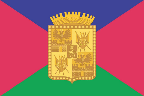 Флаг Краснодара, принятый 23 сентября 2003 года. Он представляет собой прямоугольное полотнище, разделенное по диагоналям на четыре треугольных поля синего, малинового, зеленого цвета с двухсторонним изображением в центре флага герба города Краснодара, выполненного золотым цветом.