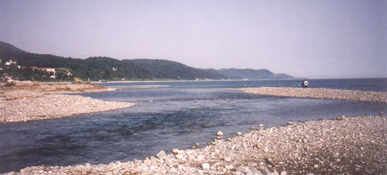 Краснодарский край. Река Мзымта на границе России и Абхазии.