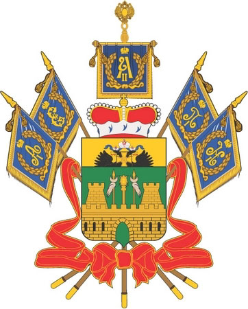 Герб Краснодарского края был принят 24 марта 1995 года, а в новой редакции 23 июня 2004 года. В основе он имеет изображение исторического герба Кубанской области. В зеленом щите золотая зубчатая стена, мурованная черным, с двумя такими же круглыми башнями и открытыми воротами. Между башен из-за стены выходят золотой пернач и два серебряных бунчука с золотыми остриями и на золотых древках. Выше российский геральдический орел (черный двуглавый, с золотыми клювами и червлеными (красными) языками), увенчанный коронами, из которых средняя больше и имеет лазоревые (синие, голубые) ленты, несущий на груди Кавказский крест (крест с мечами «За службу на Кавказе»). Щит увенчан княжеской короной, выше — штандарт Александра II. По сторонам за щитом накрест положены четыре лазоревых знамени с вензелями Екатерины II, Павла I, Александра I, Николая I. Древки штандарта и знамен лазоревые, навершия, кисти на шнурах и бахрома штандарта, знамен и подтоки — золотые. Древки штандарта и знамен перевиты двумя лентами орденов Ленина, соединенными под щитом бантом.