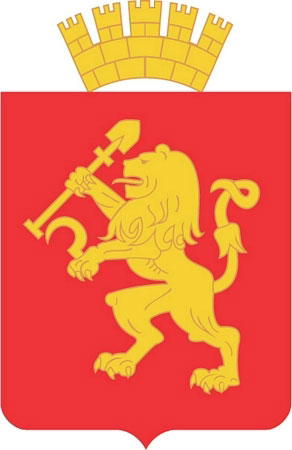 Современный герб Красноярска был принят 28 ноября 1994 года. Позднее, 19 сентября 2004 года, он был вновь утвержден с небольшими изменениями. Золотой, стоящий на задних лапах лев, держит в передних лапах лопату и серп. Геральдический щит увенчан золотой пятибашенной короной центра субъекта Российской Федерации (добавлена в 2004 году).