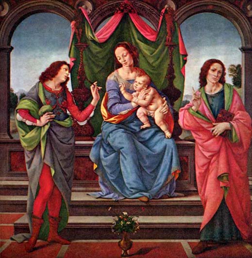 Доренцо ди Креди. Мария с младенцем и двумя святыми. Первая треть 16 века. Дерево. Дрезденская картинная галерея.