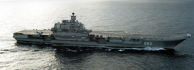 Тяжелый авианесущий крейсер «Адмирал Кузнецов». В 1978 году в СССР было принято решение о создании пятого отечественного авианесущего корабля проекта 1143, способного нести 50 самолетов Су-27К, Су-25 и Як-141. Водоизмещение корабля свыше 55 тысяч тонн. Наибольшая длина 300 м, ширина 65 м. Мощность котлотурбинной энергетической установки составляет 4х50 тысяч л. с., что обеспечивает кораблю максимальную скорость хода — около 29 узлов. Дальность плавания экономическим ходом равна 7 тысяч миль. Заложенный в 1982 году как «Рига», корабль уже в 1983 году был спущен со стапеля как «Леонид Брежнев». В 1987 году, когда начались его швартовые испытания он получил название ТАВКР «Тбилиси». С 1990 года корабль носит современно название — ТАВКР «Адмирал флота Советского Союза Н. Г. Кузнецов».