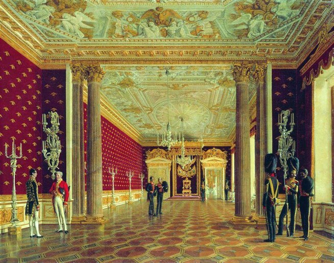 Е.Ф. Крендовский. Тронный зал императрицы Марии Федоровны в Зимнем дворце. 1835 год. Эрмитаж, Петербург.