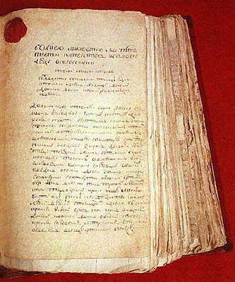 Манифесты Е. И. Пугачева. На первом плане — манифест донскому казачеству. РГАДА.