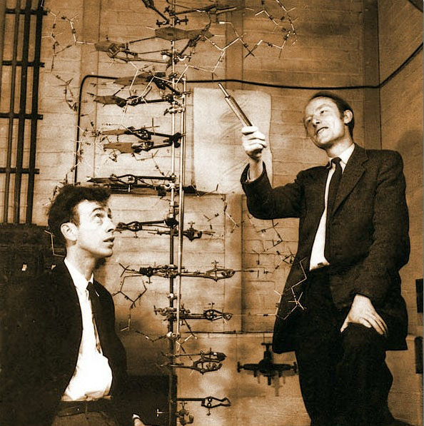 Дж. Уотсон и Ф. Крик. со своей моделью ДНК. 1953.