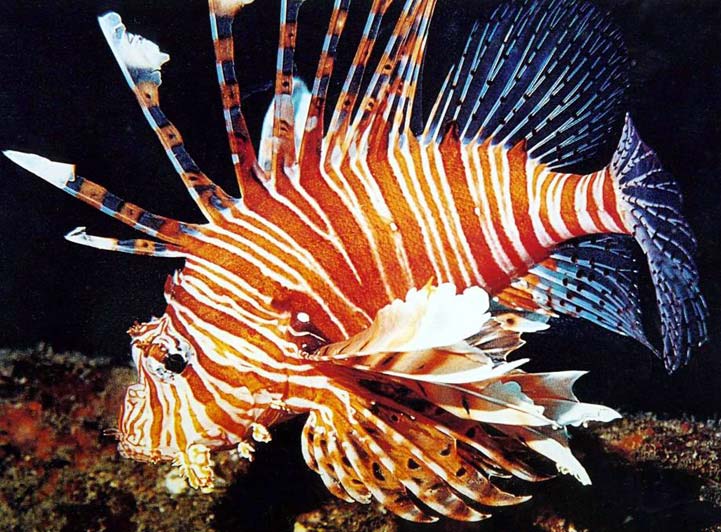 Крылатка (Pterois volitans) из семейства скорпеновых рыб. Фотография В. В. Климова.