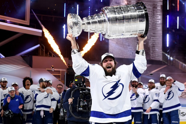 Кубок Стэнли 2020 в руках российского нападающего клуба «Тампа-Бэй Лайтнинг» Никиты Кучерова. Источник: //championat.com