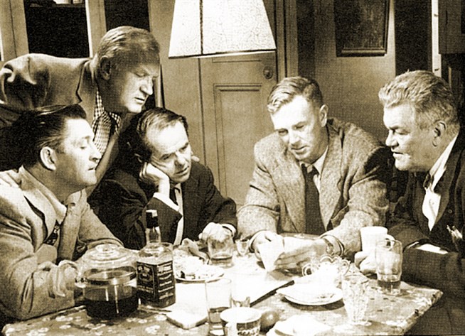 Тед де Корсия, Джой Сойер, Элиша Кук-младший, Стерлинг Хайден и Джей Флиппен в криминальной драме Стенли Кубрика «Убийство». 1956 год.