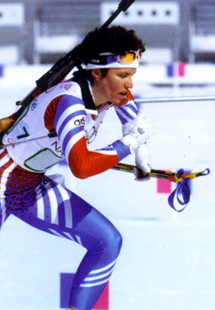 Чемпионка Олимпийских игр в Нагано (1998) по биатлону Галина Куклева у огневого рубежа.