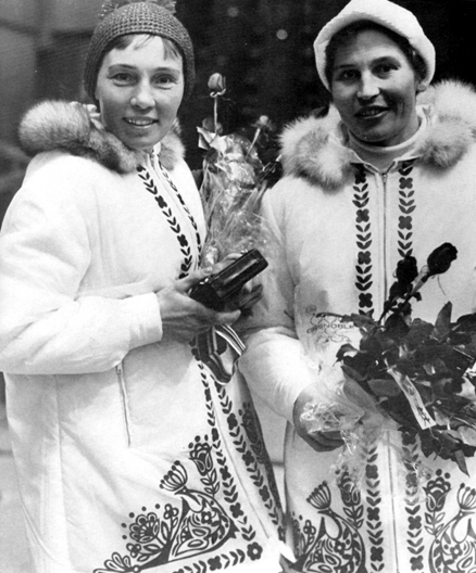 Неоднократная олимпийская чемпионка Галина Кулакова (справа) и ее подруга по команде олимпийская чемпионка Алевтина Колчина.