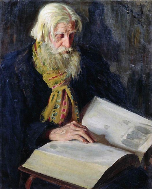 Иван Семенович Куликов (1875-1945). Портрет старообрядца. Старик за чтением. 1911 год. Холст, масло. Муромский историко-художественный музей.