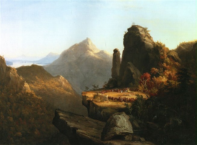 Томас Коул (1801-1848). Сцена из романа Ф. Купера «Последний из могикан». Кора бросается к ногам Таменунда. 1827 год. Уодсворт Атениум, Хартфорд, Коннектикут.
