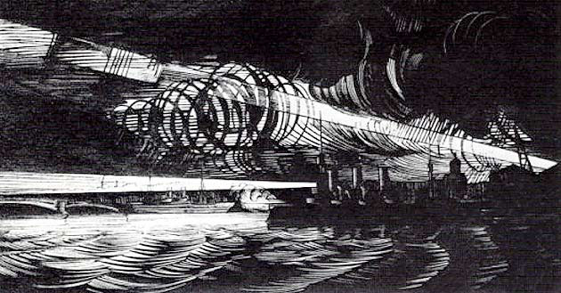 Н. Н. Купреянов. «Аврора» на Неве в ночь на 25 октября 1917 года». 1923 год. Третьяковская галерея.
