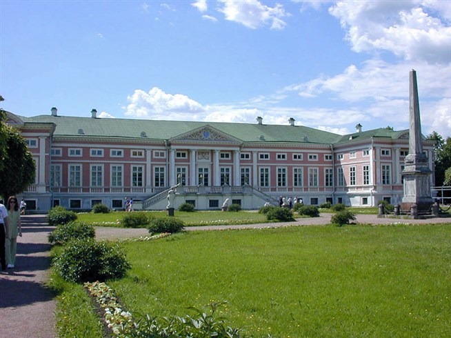 Кусковский дворец — композиционный центр ансамбля «Кусково», одного из самых ранних образцов летних загородных резиденций России. Создан на месте «Старых хором» в 1769-75 гг. под руководством известного московского архитектора Карла Бланка в стиле раннего классицизма. Парадный фасад, строго вытянутый по горизонтали вдоль Большого пруда, имеет четкое трехчастное деление. Вход оформляет высокий шестиколонный портик с парадной лестницей и двумя пологими пандусами (дорожками для въезда карет), украшенными фигурами сфинксов. Главное назначение кусковского Дворца — для приема гостей. В его художественном убранстве ведущую роль играют картины, портреты, гравюры, мраморная скульптура, произведения декоративно-прикладного искусства. Объединенные в целостный художественный ансамбль, они создают уникальный образец русского усадебного интерьера 2-ой половины 18 в.