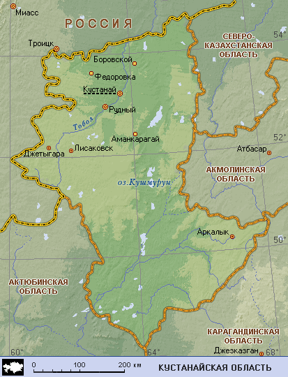 Кустанайская область (географическая карта)