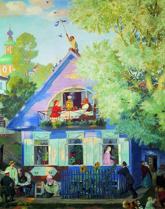 Б.М. Кустодиев. Голубой домик. 1920 год. Холст, масло. Музей-заповедник «Петергоф».