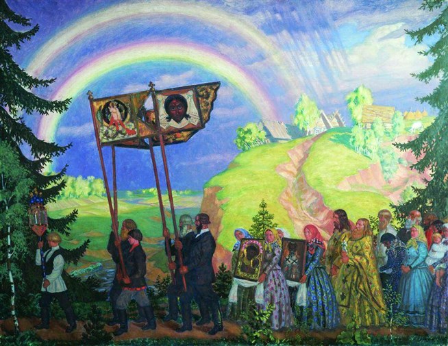 Б.М. Кустодиев. Крестный ход. 1915 год. Холст, масло. Чувашский художественный музей.