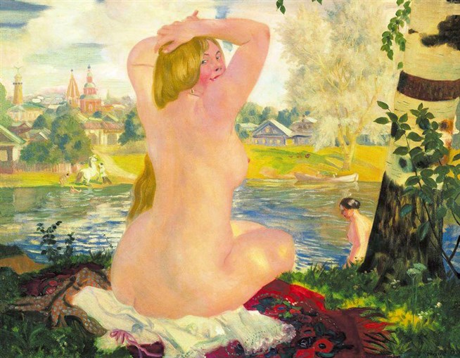 Б.М. Кустодиев. Купальщица. 1921 год. Холст, масло. Русский музей, Петербург.