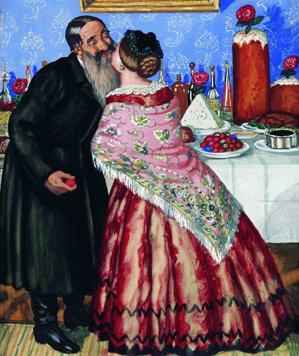 Кустодиев Борис Михайлович (Пасхальный обряд. Христосование)