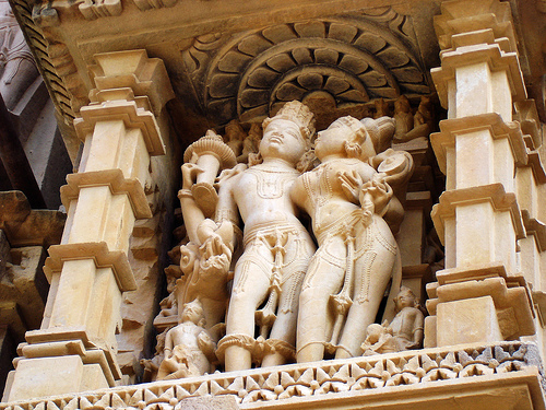 Кхаджурахо. Храм Кандарья Махадева. Рельеф, изображающий Вишну и Лакшми.
