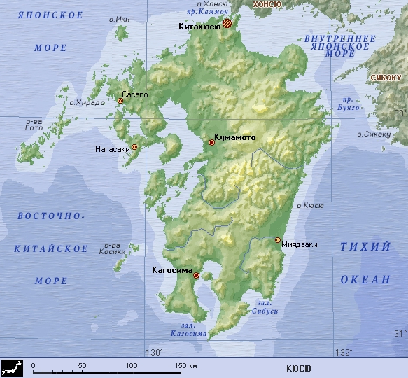 Кюсю (географическая карта).