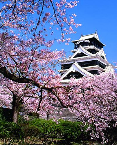 Цветущая сакура близ феодального замка Кумамото (Кумамото-дзе).
