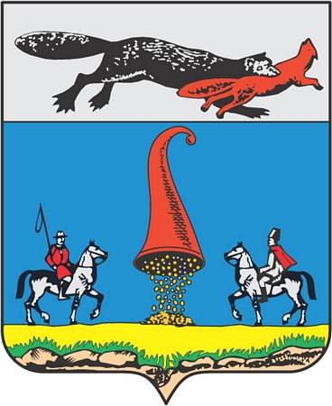 Герб города Троицкосавска, утвержденный 19 октября 1846 года. «В голубом поле рог изобилия, из которого сыплются золотые монеты, по сторонам оного в песчаном грунте справа казак, слева бурят, оба верхом на конях». До середины 19 века торговая слобода Кяхта и город Троицкосавск были отдельными административными единицами. В 1861 году они были объединены.