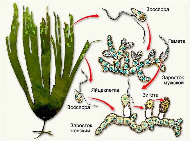 Бурая водоросль ламинария размножается бесполым и половым путем.